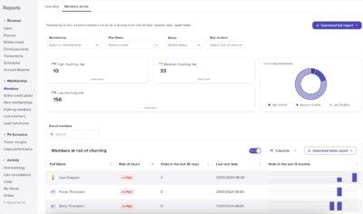 Spend five minutes each morning reviewing yesterday’s key metrics—new sign-ups, class attendance, and any member alerts. Our Members at Risk report makes it easy to spot members who need attention before they cancel.