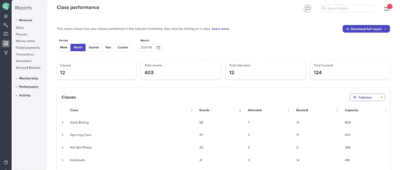 Our Class Performance and Trainer Insights reports show you exactly which time slots and instructors drive the highest attendance, helping you maximize both member satisfaction and revenue per class.