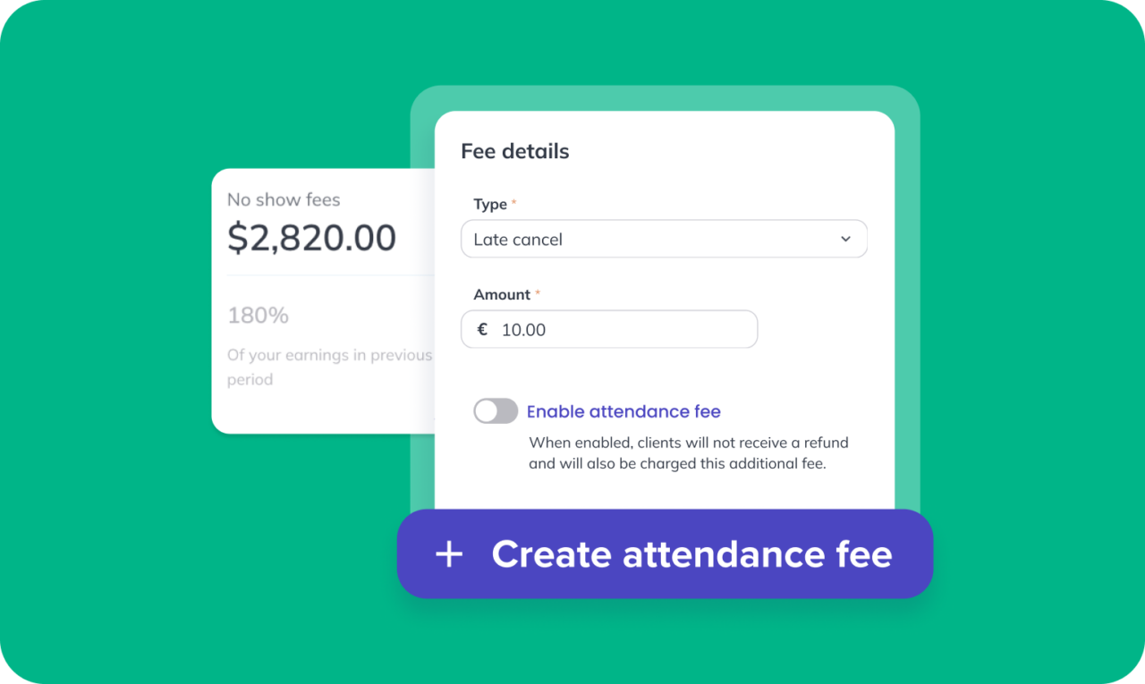Fees are applied after a configurable review window, giving your team time to make exceptions when needed. This removes the need for manual tracking or awkward conversations at the front desk, while ensuring policies are enforced consistently.