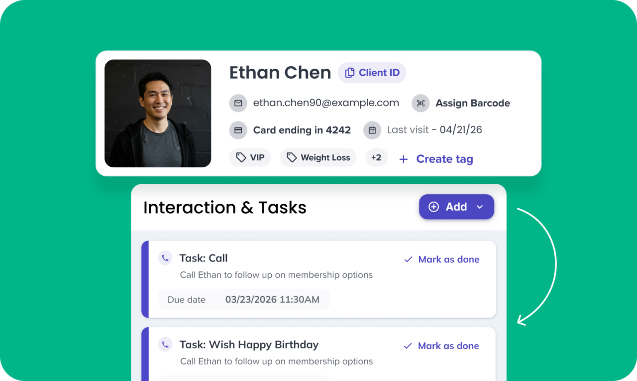 - Tags: Access important member context, like injuries or notes, during classes or sessions