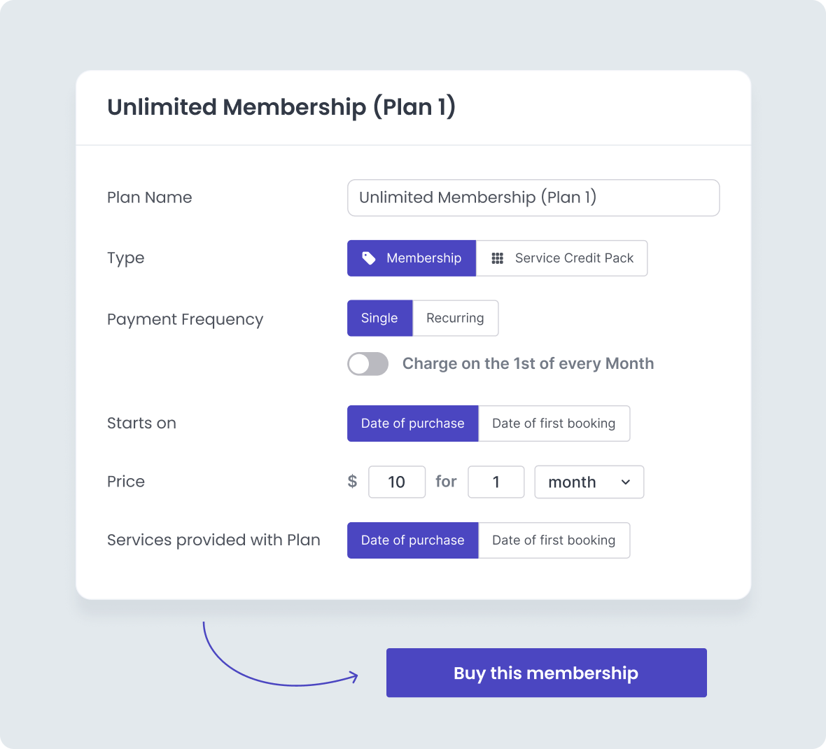 Everything you need to sell and manage memberships, credits, and services your way. Seamlessly connected to booking, billing, and access in one platform.