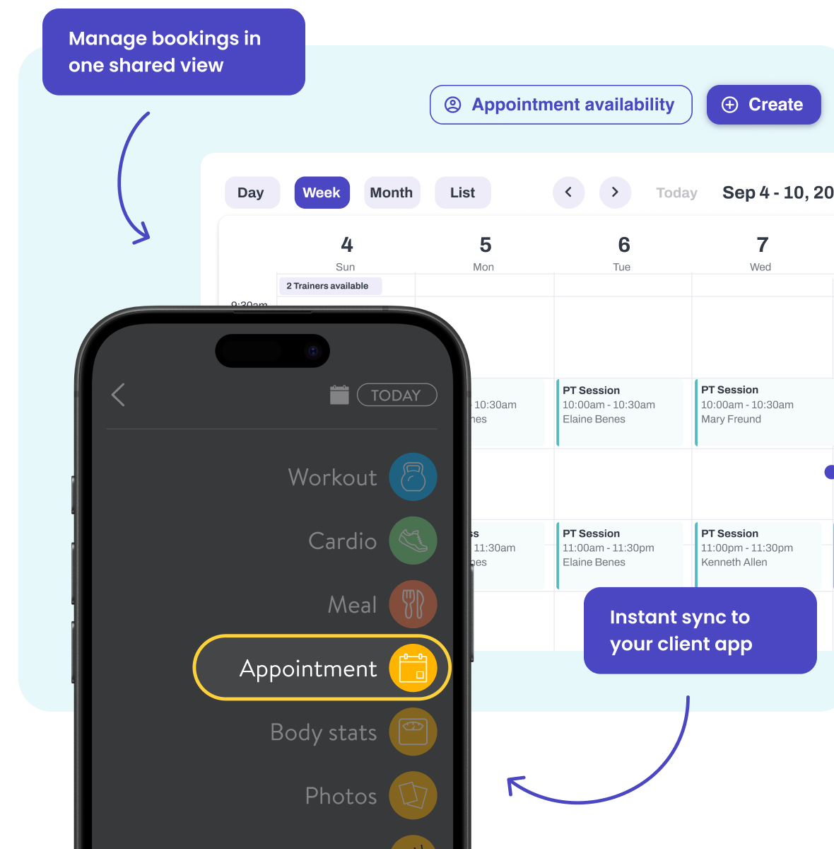 Stay on top of every session and trainer schedule