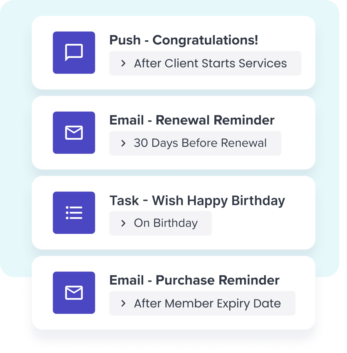 Use automated messages and engagement tools to keep clients coming back for more sessions.