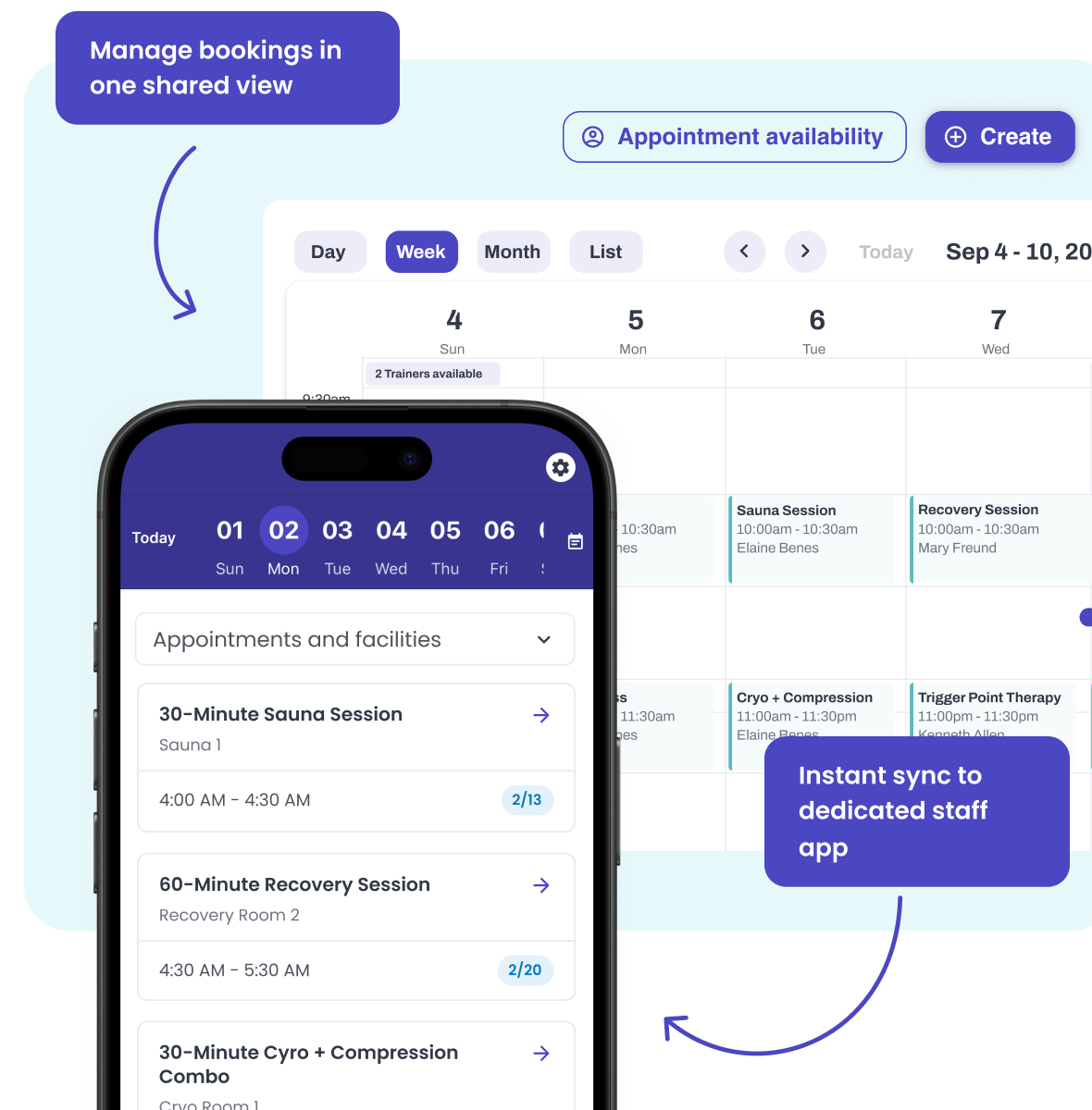 Schedule services quickly, manage room and practitioner availability, and keep every booking organized in real time.