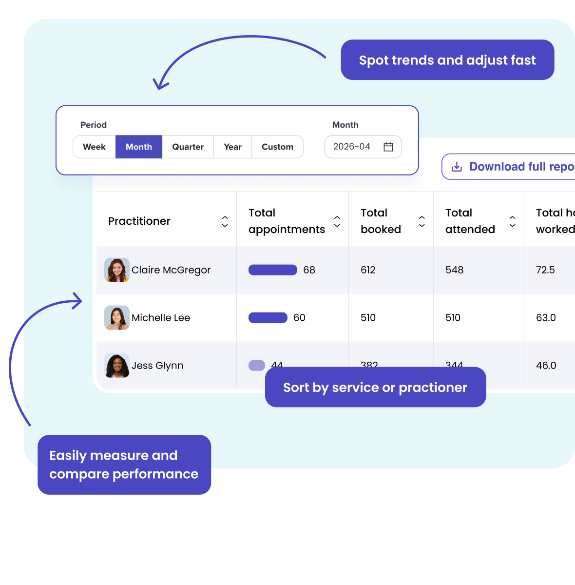 Understand performance by service and practitioner so you can optimize your schedule and grow revenue.